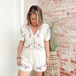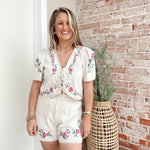 Linen shorts. Flower embroidery
