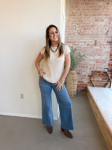 Ultra Wide Cuff Cream Jeans
