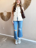 High rise jeans, slightly cropped, straight leg. 2% spandex