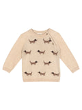 This adorable and detailed organic cotton knit cardigan with all-over dachshunds embroidery on the front.