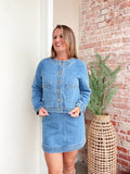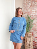 I just love how versatile this piece is! You can wear it like this- buttoned up as a top. Or wear it as a denim jacket over all your favorite tops! The possibilities are endless. I also love how this jacket is more of a tailored fit- so it’s easy to dress up if needed!