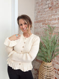 Ruffle Hem Ribbed Knit Sweater Cardigan
