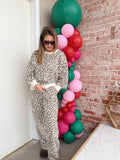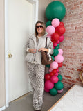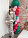 Cheetah wide leg pants, pink bow embroidered, pockets & elastic waist
