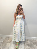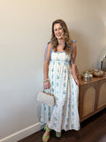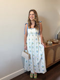 Step into spring with this enchanting blue floral maxi dress! Lightweight and breezy, it's designed for those picture-perfect moments when the weather warms up. The delicate floral print and flowing hem create an effortlessly romantic vibe that's perfect for brunches, garden strolls, or sunset adventures. Pure springtime magic!