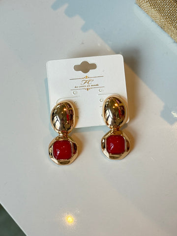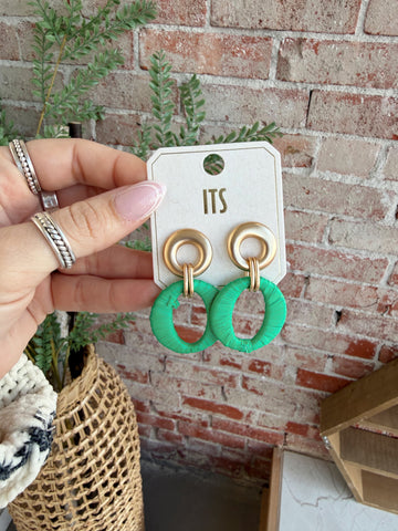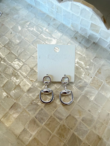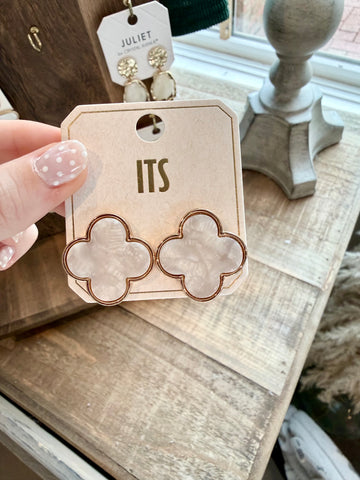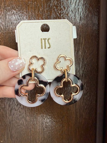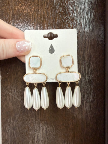 Teardrop Shell & Hammered Round Earrings - Grey/Gold