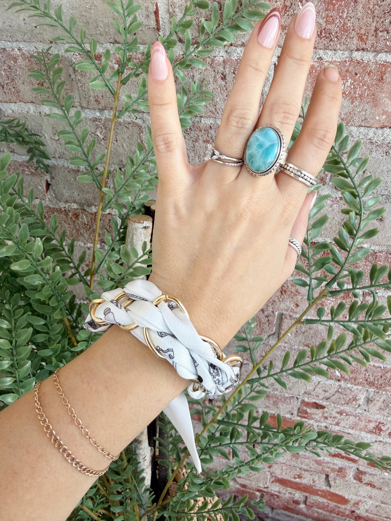 Geometric Oval Chain Scarf Bracelet in White