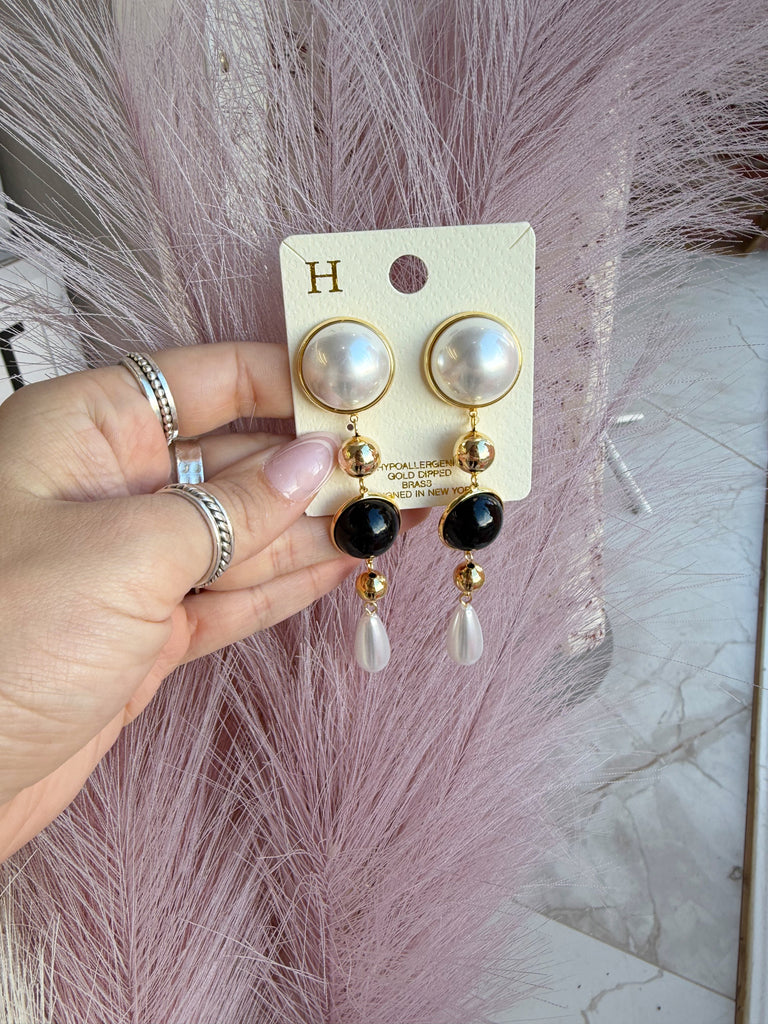 • Linear Pearl & Ball Earrings