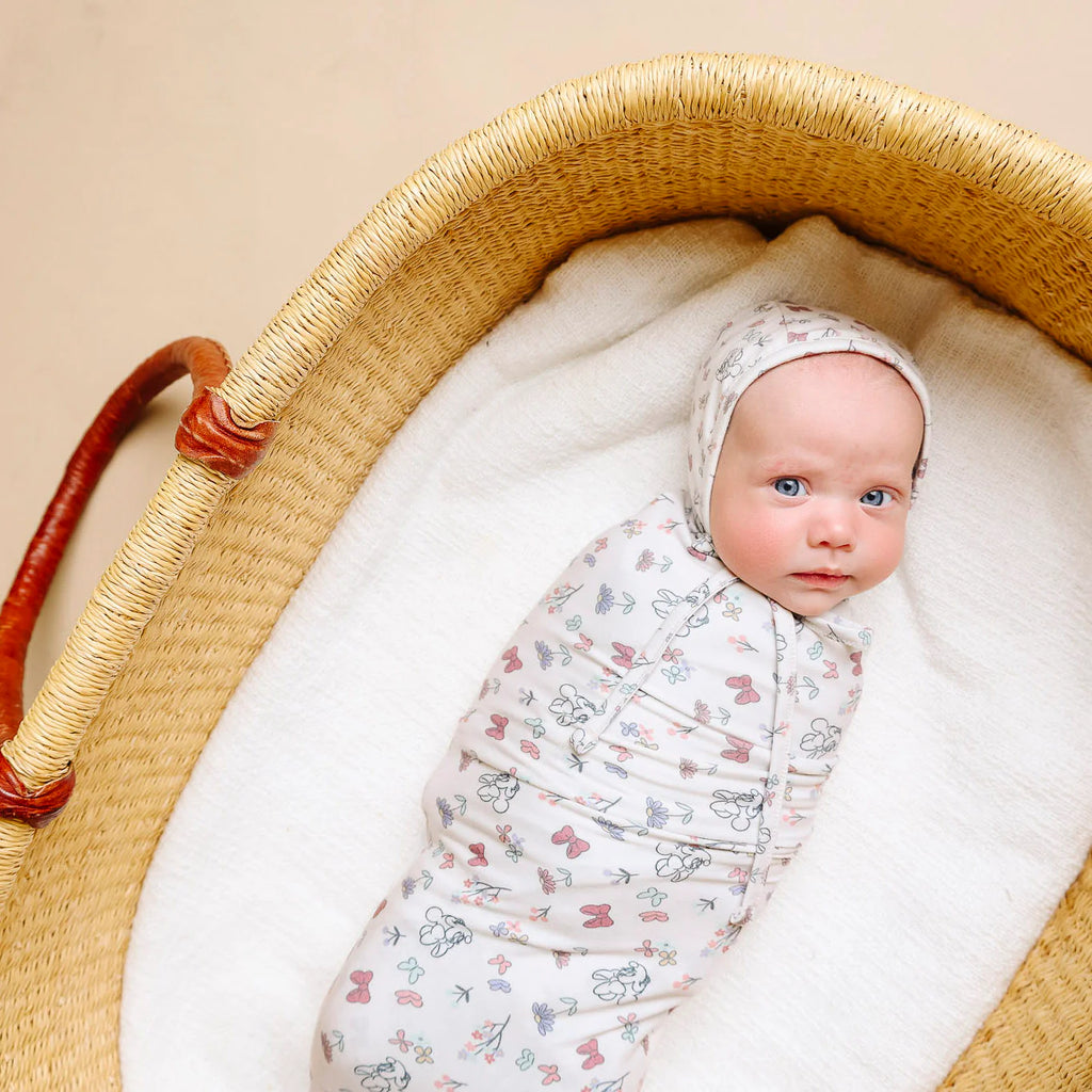 Copper Pearl Knit Swaddle Blanket- Minnie Mouse Bowquet