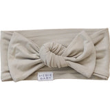 This is a one size head wrap that will fit size newborn and up. It is made out of a soft Bamboo Rayon. They are tied in a simple square knot making it easy to resize on your little ones head. We love how soft they are and the neutral designs they come in. They each have matching stretch knot gowns and swaddles in our shop.