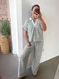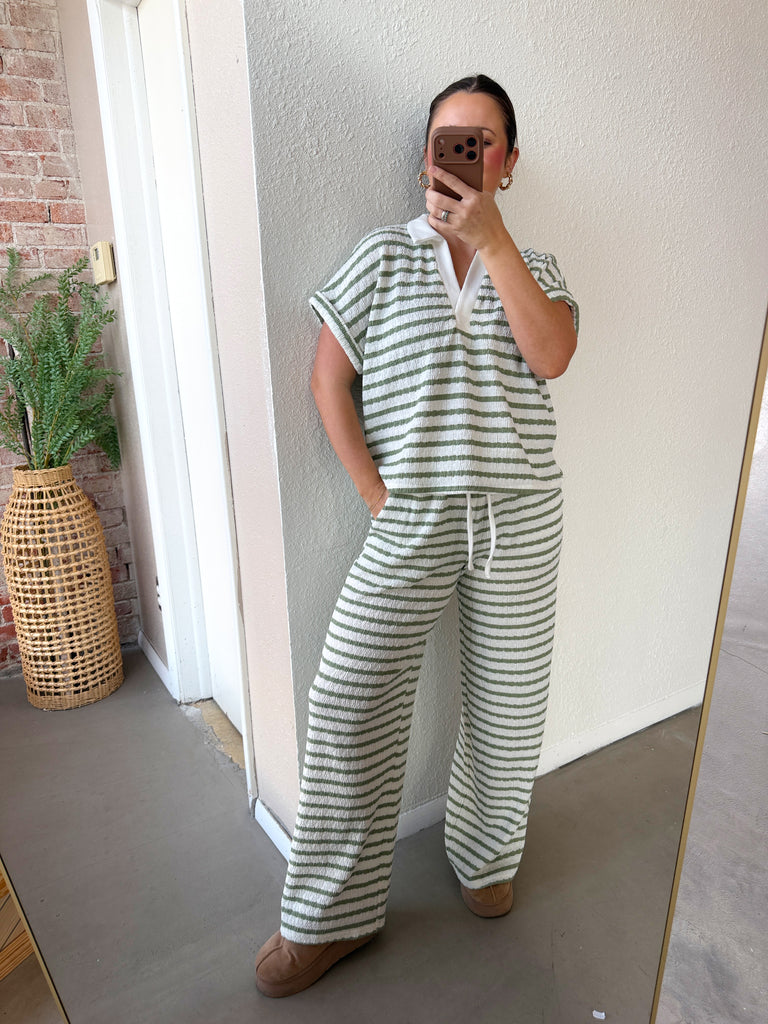 Meet your new spring staple—a breezy, lightweight top with charming olive and white stripes and a sweet collar detail. Simple, feminine, and endlessly wearable for those perfect warm-weather days ahead.