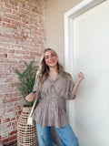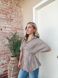 The cinched waist on this top is the PERFECT detail. So cute & so flattering! Wear it to the office or to a night out on the town!