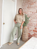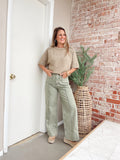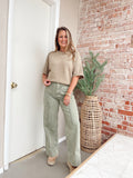 I loveee a good colored denim. High rise, front pockets, and the seam down the middle just make them so unique. And the color is perfect to pair with all your fall tops and sweaters. So easy to dress up for work as well!