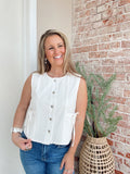 White top, silver buttons