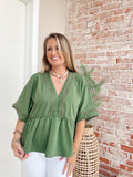 The boho details on this are sooo dreamy! Light weight, flowy, and the lace detail! The color is also perfect for fall!