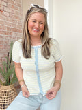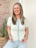 Short sleeve sweater top, button up