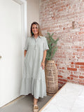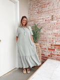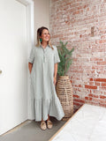This might be my favorite item from this launch... It is just PERFECT. This flowy striped maxi is the perfect mix of dressy and casual. The detail on the bottom hem just makes this dress! Also the green color is perfect for now, but also transitions so well into holiday season!!