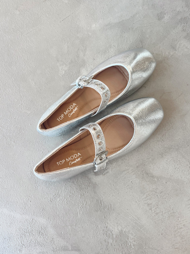 • Silver Ballet Flats