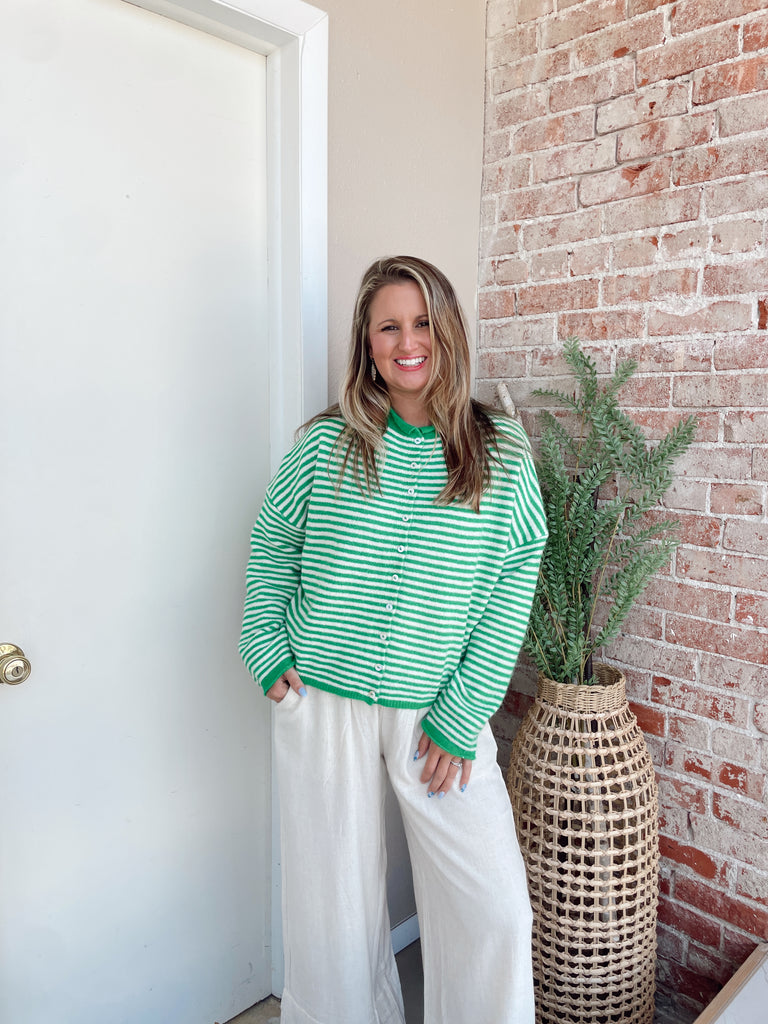 • Spring Breeze Cardigan in Kelly Green Stripes