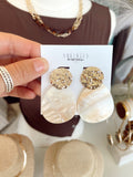• Teardrop Shell & Hammered Round Earrings - Cream/Gold