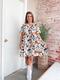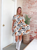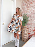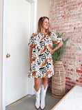 This dress is SO FUN! I’m obsessed with this unique print. And the shape and material is sooo flattering. Wear it with boots to your next concert or pair is either some mules or loafers and wear to the office.