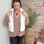 This soft sherpa vest is the perfect layering piece for chilly days. Featuring a cozy cream texture, zip-up front, and relaxed fit, it adds the cutest touch of warmth to any outfit. Easy to pair with sweaters, long sleeves, or your favorite fall layers for a comfy and stylish look.