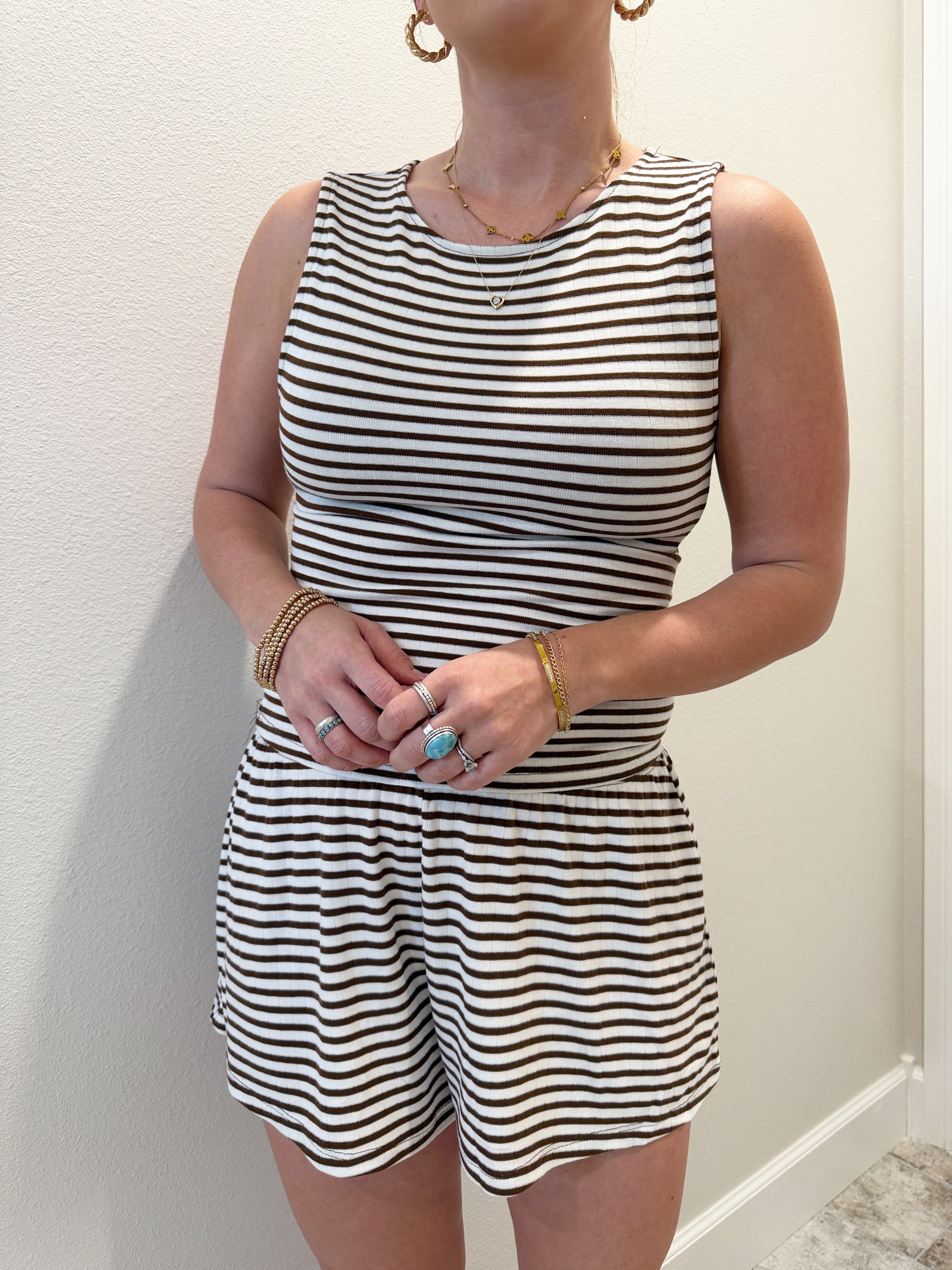Stripe sets are IN this year! I love a good simple set that you can dress and style so many ways. The tube top in this one is SO good! The perfect way to elevate a simple everyday set.