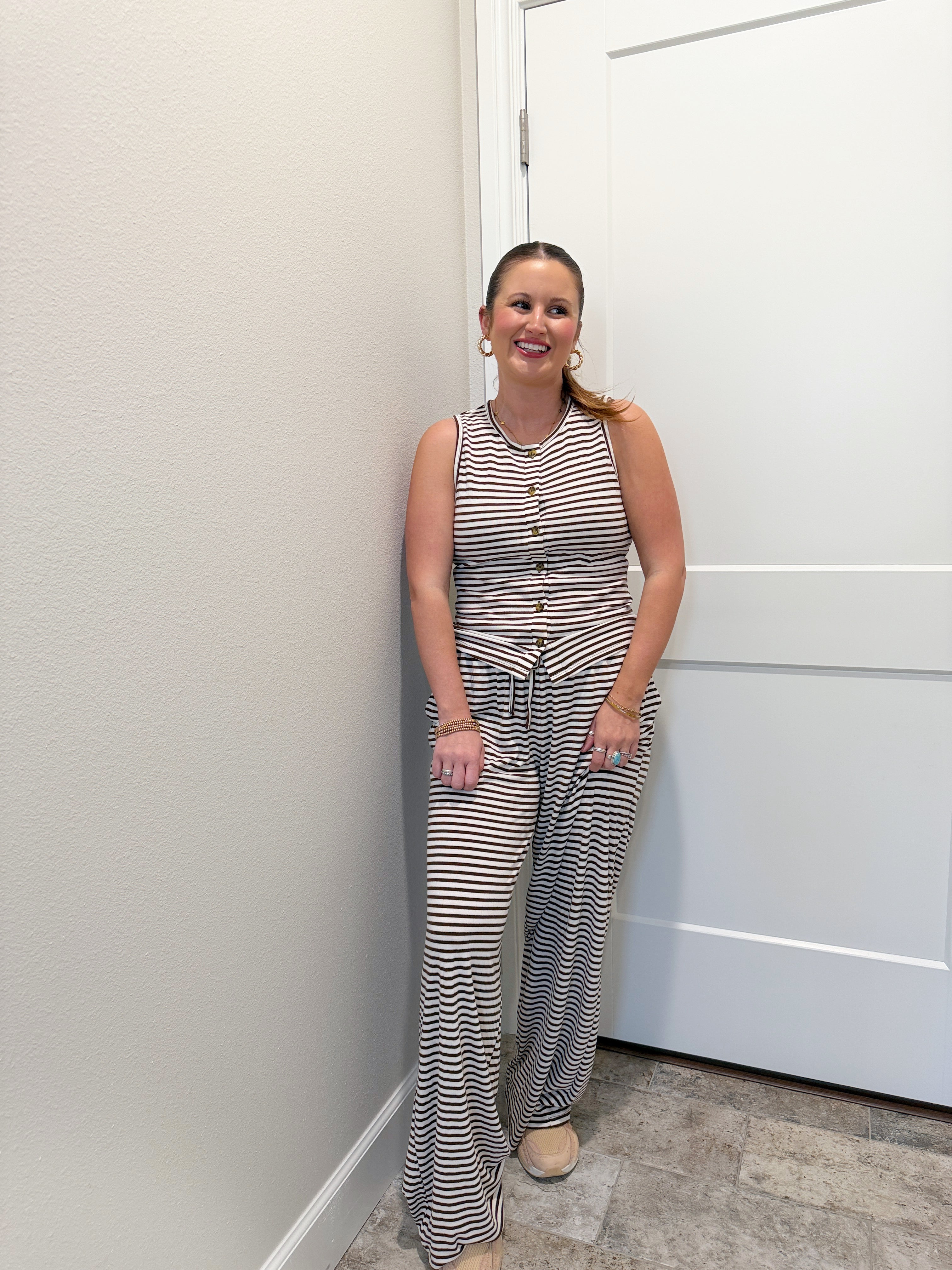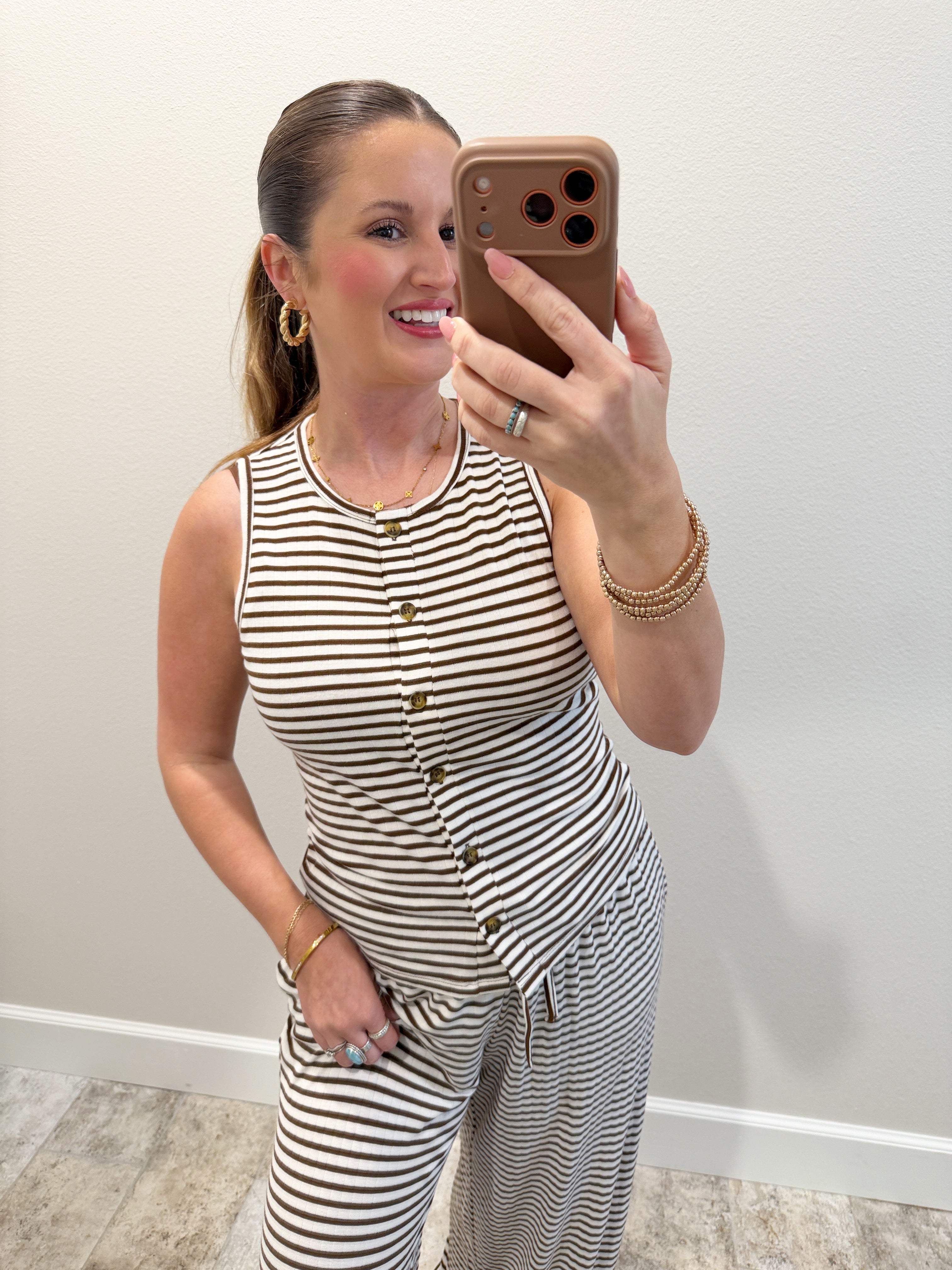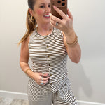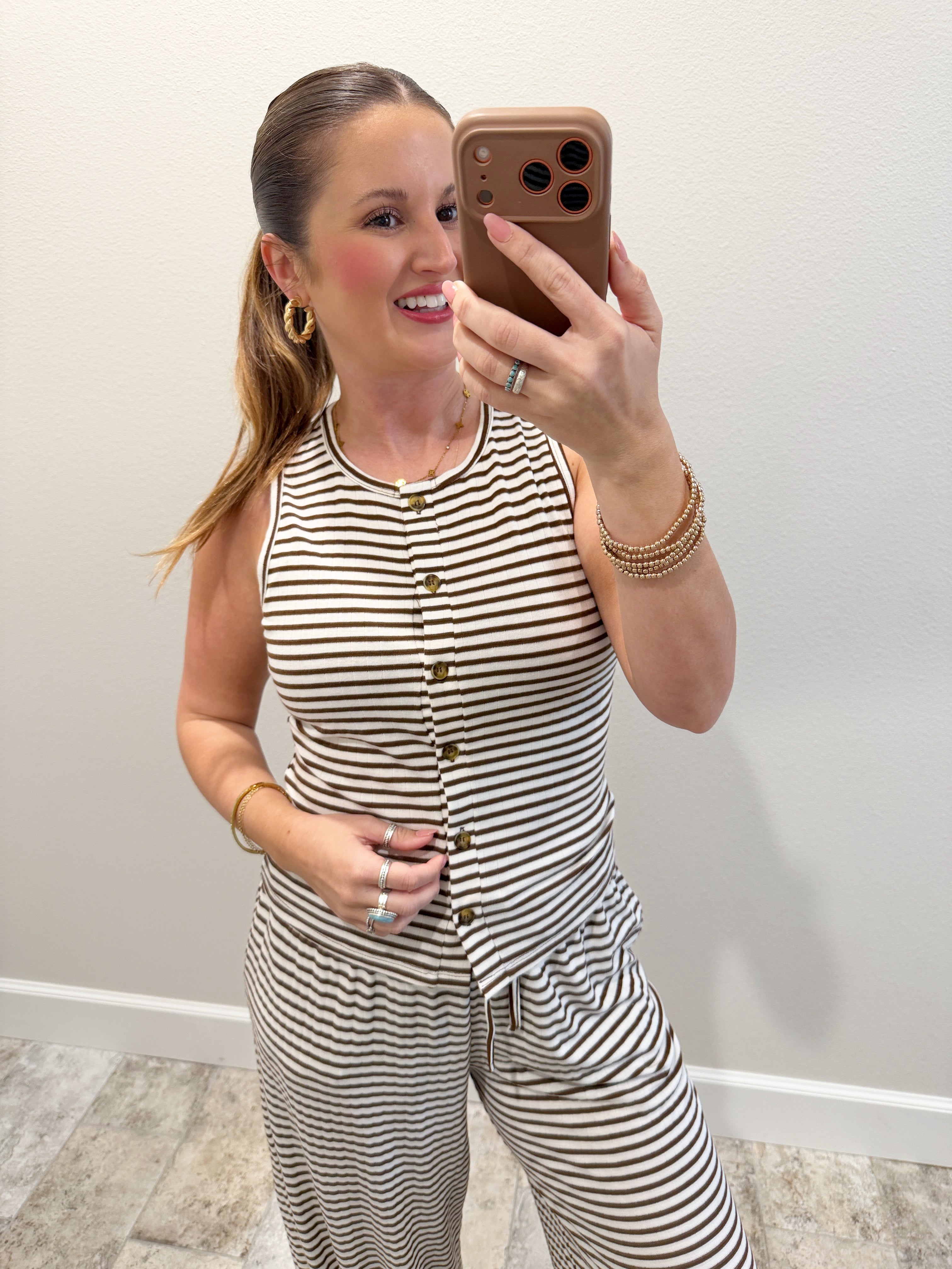 Stripe sets are IN this year! I love a good simple set that you can dress and style so many ways. Throw on a denim jacket and sandals and you can dress it up for a vacay look. Or add sneakers and a ball cap for a mom-on-the-go style!