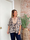 Everyone is always asking for good tops that they can wear to both the office & out and about. This top checks both of these boxes! The flowy material is perfect for these warmer fall days. And the collared detail!! SO cute and unique.